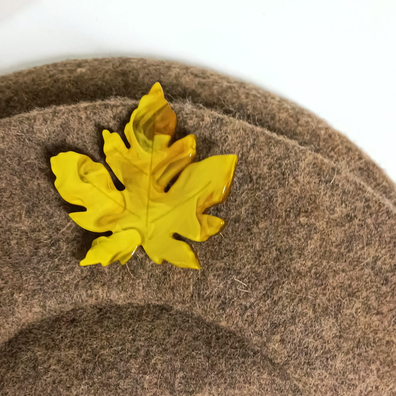 Lleva adorno de alfiler de resina con forma de hoja.