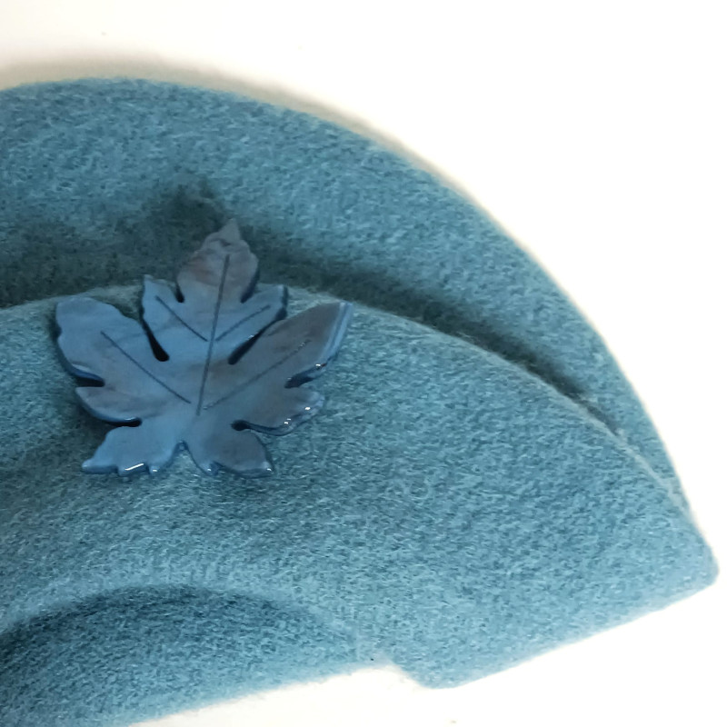 Lleva adorno de hoja de resina al tono, alfiler de quita y pon.