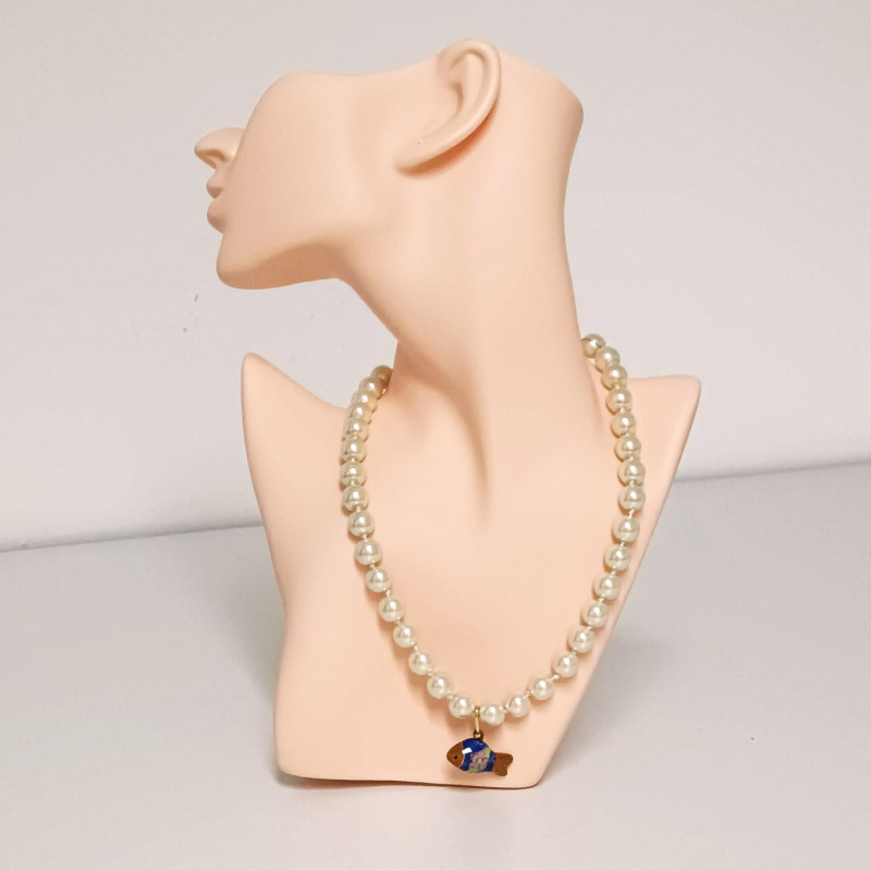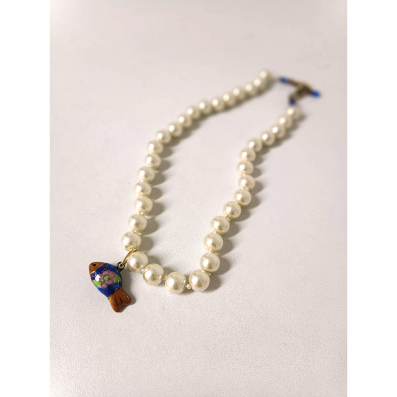 Gargantilla de perlas con adorno de pez de cerámica pintado a mano.