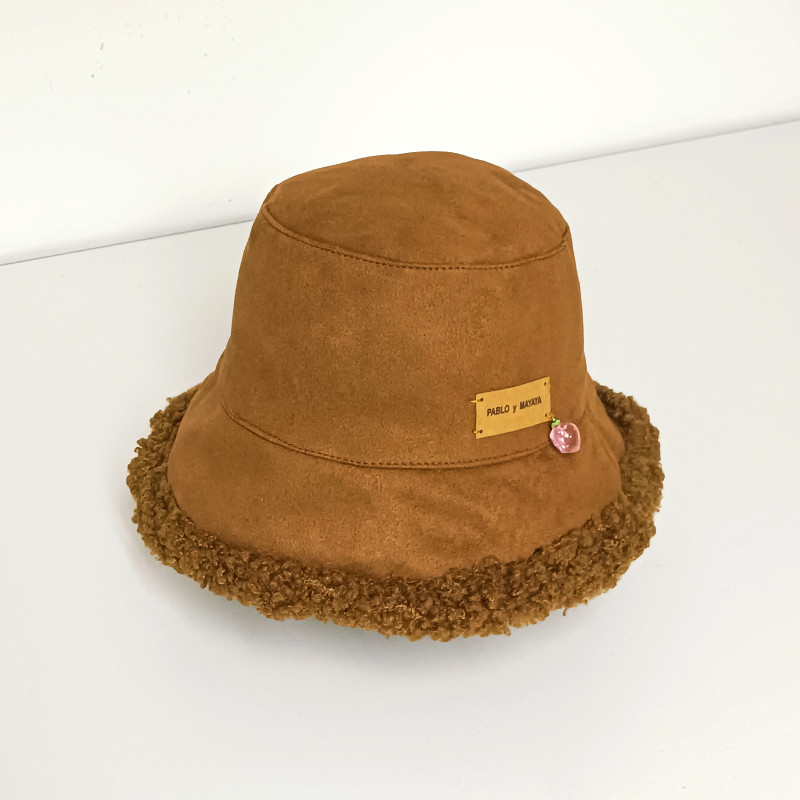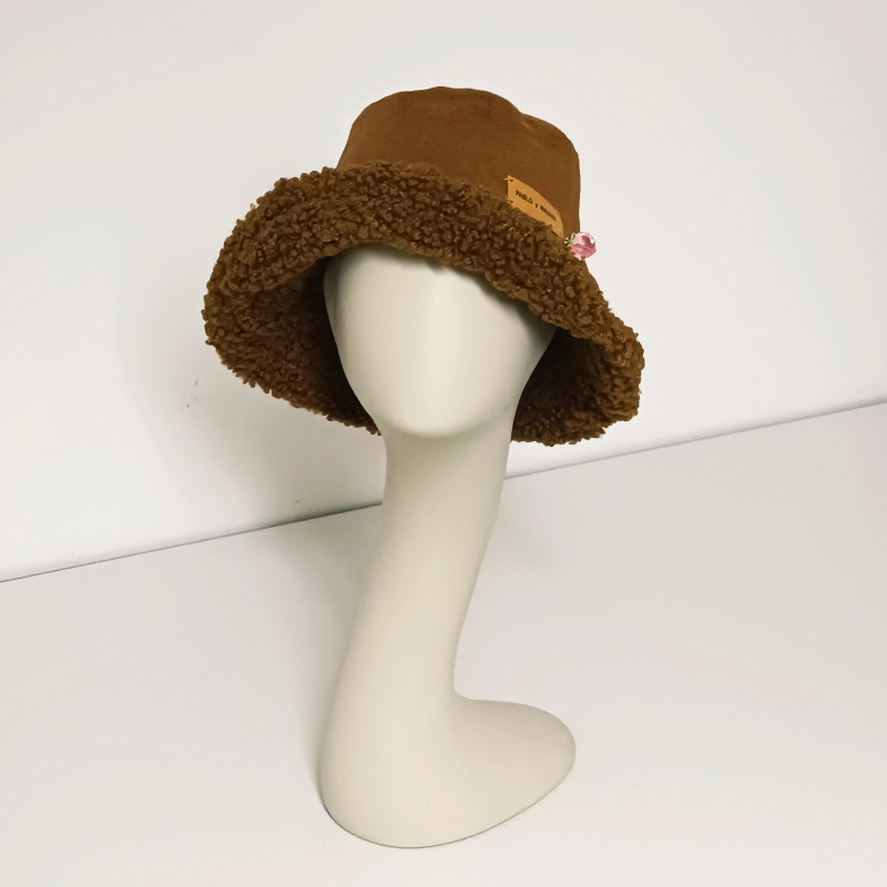 Gorro tipo bucket hat de antelina y rizo reversible.